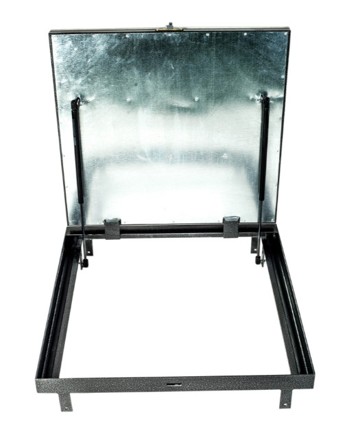 Właz podłogowy pod płytkami z amortyzatorami gazowymi, model „Light+”.